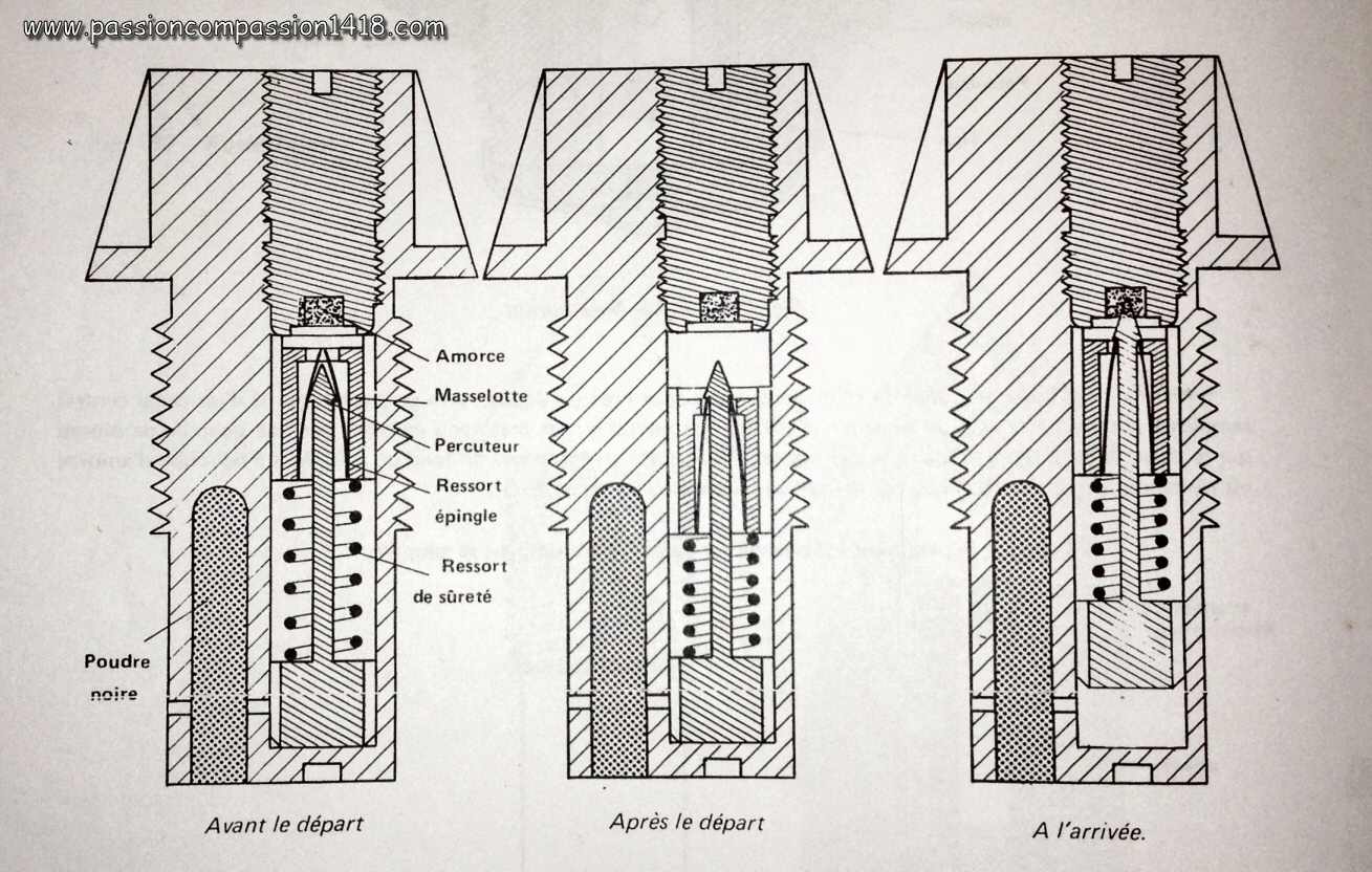 Fusée 25/38 Mod 75. Schéma d'époque montrant la séquence d'armement |