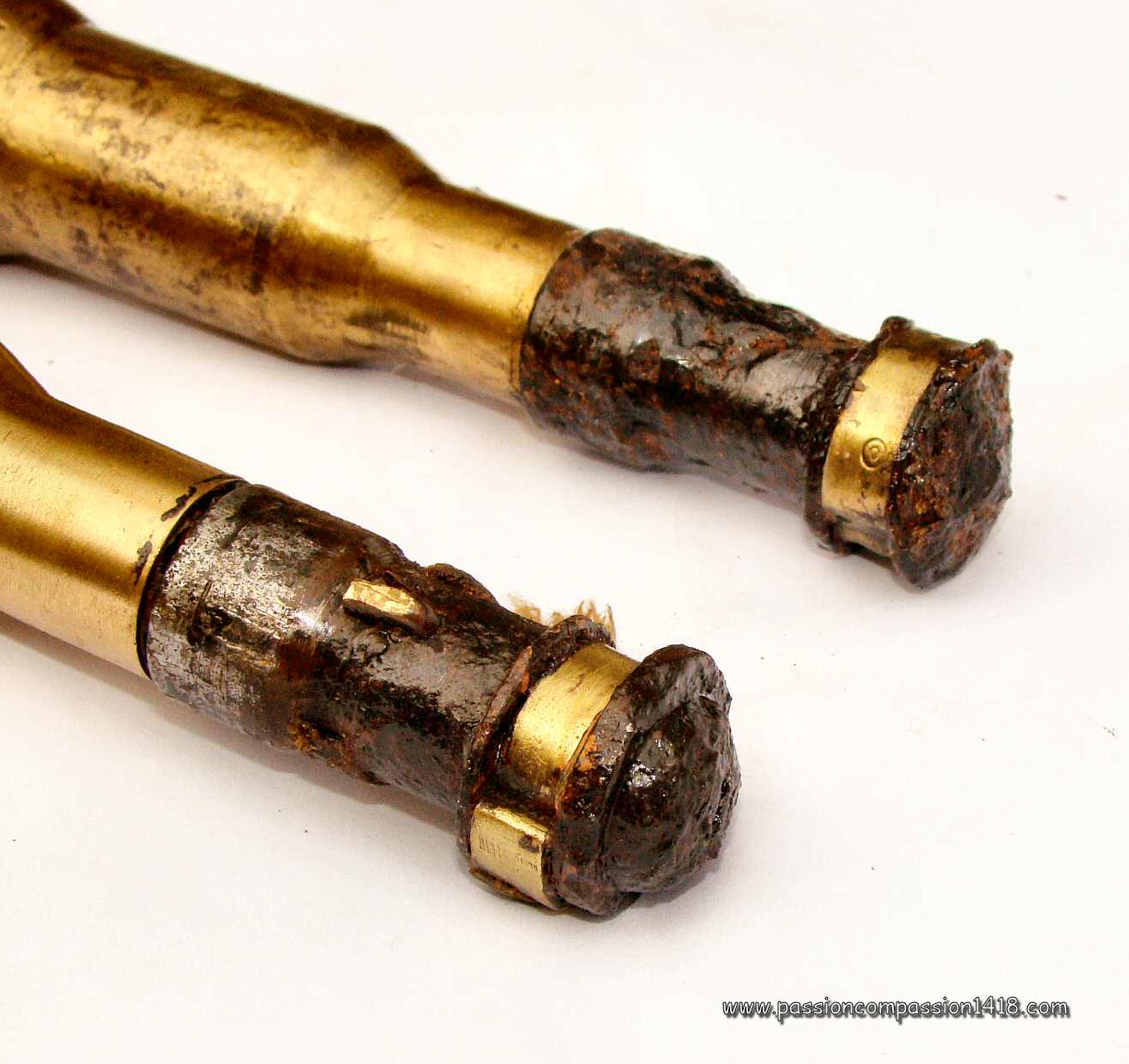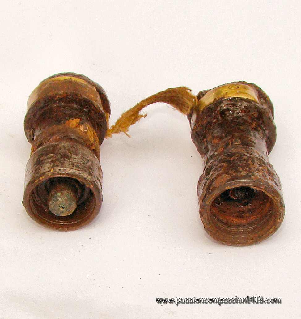Fusée 22/31 Mod 1897. Vue arrière de deux exemplaires. L'un d'entre eux à conservé le bouchon de queue |